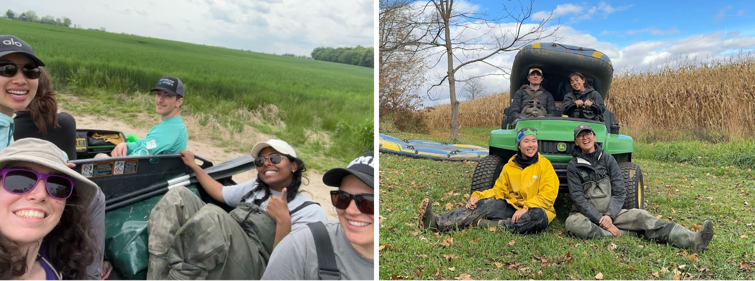 Caption: Field season researchers involved in the intensive sampling for this year’s field campaigns. From left to right in the left-hand image: Jordan Li, Sara Abate, Joey Ruck, Thenuja Vittanachchi, and Emily Vesnaver. Not pictured: Ruby Collins. From front to back in the right image: Jordan Li, Jennifer Zhou, Caden Hutcheon, and Natalie Liu.