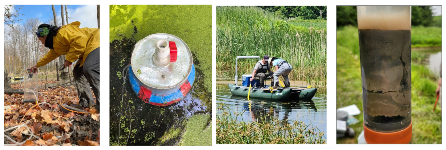 We also collected sediment cores and analyzed them to measure how much carbon is stored in the soil over time. Together, these measurements allow us to develop a complete “carbon budget” showing both what wetlands release and store.