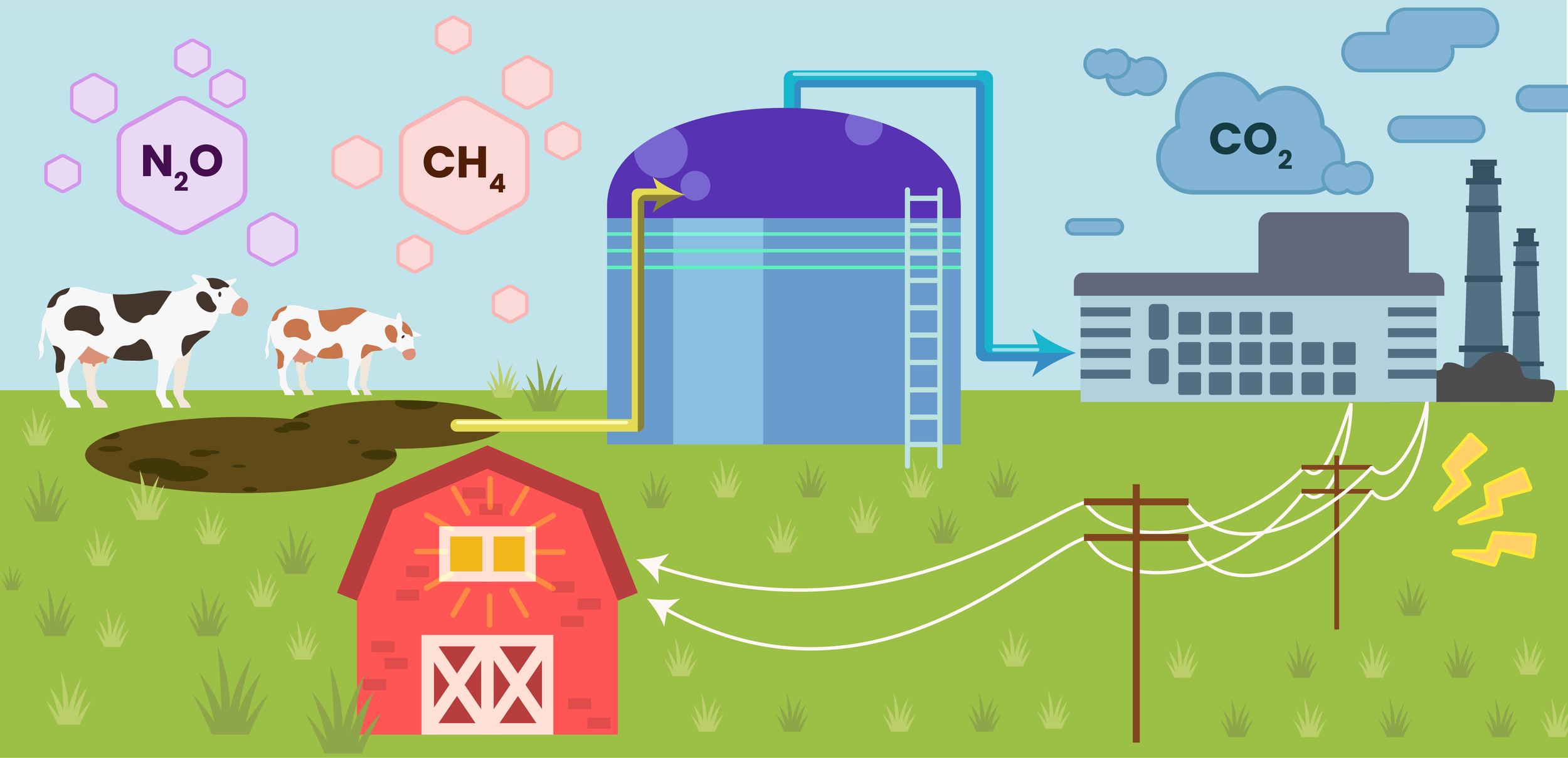 Anaerobic digesters convert manure and food waste into renewable energy, while also reducing greenhouse gas emissions and improving water quality